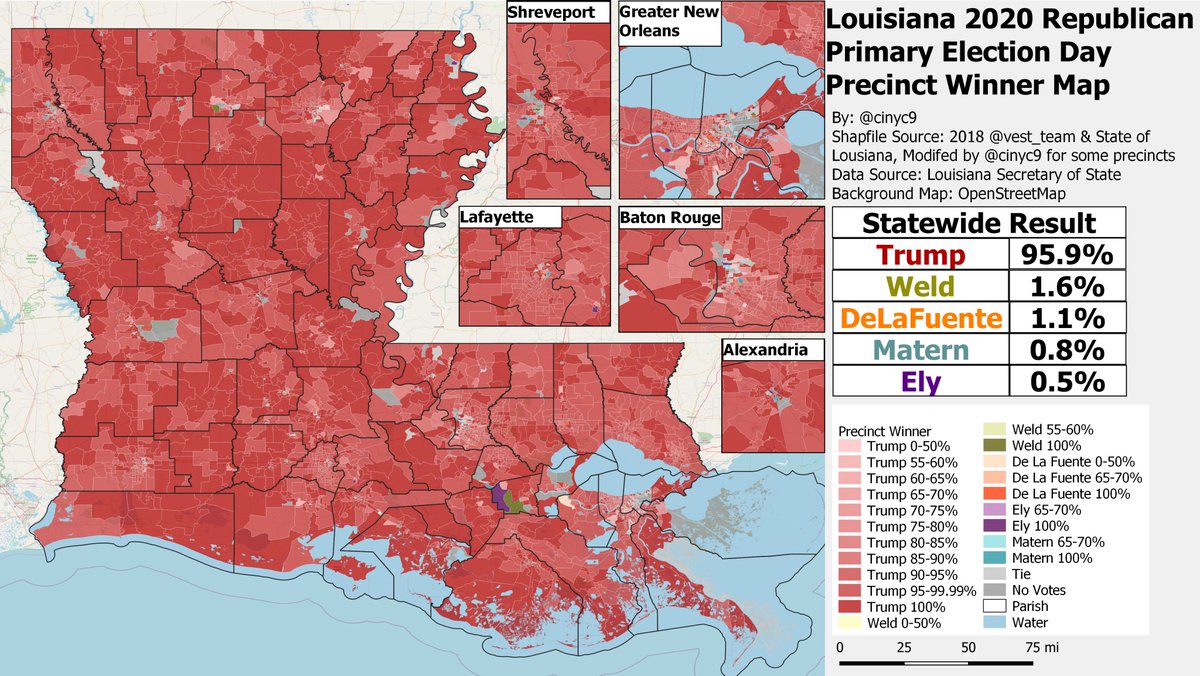 cinyc on X: “Map of the 2020 Louisiana Republican Presidential