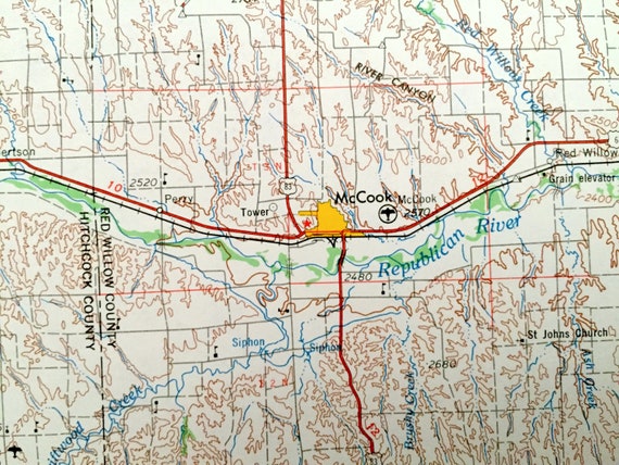 Antique Mccook, Nebraska 1954 US Geological Survey Topographic Map