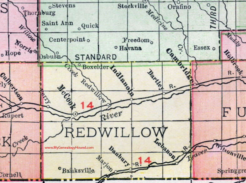 Red Willow County, Nebraska, map, 1912, McCook, Indianola, Lebanon