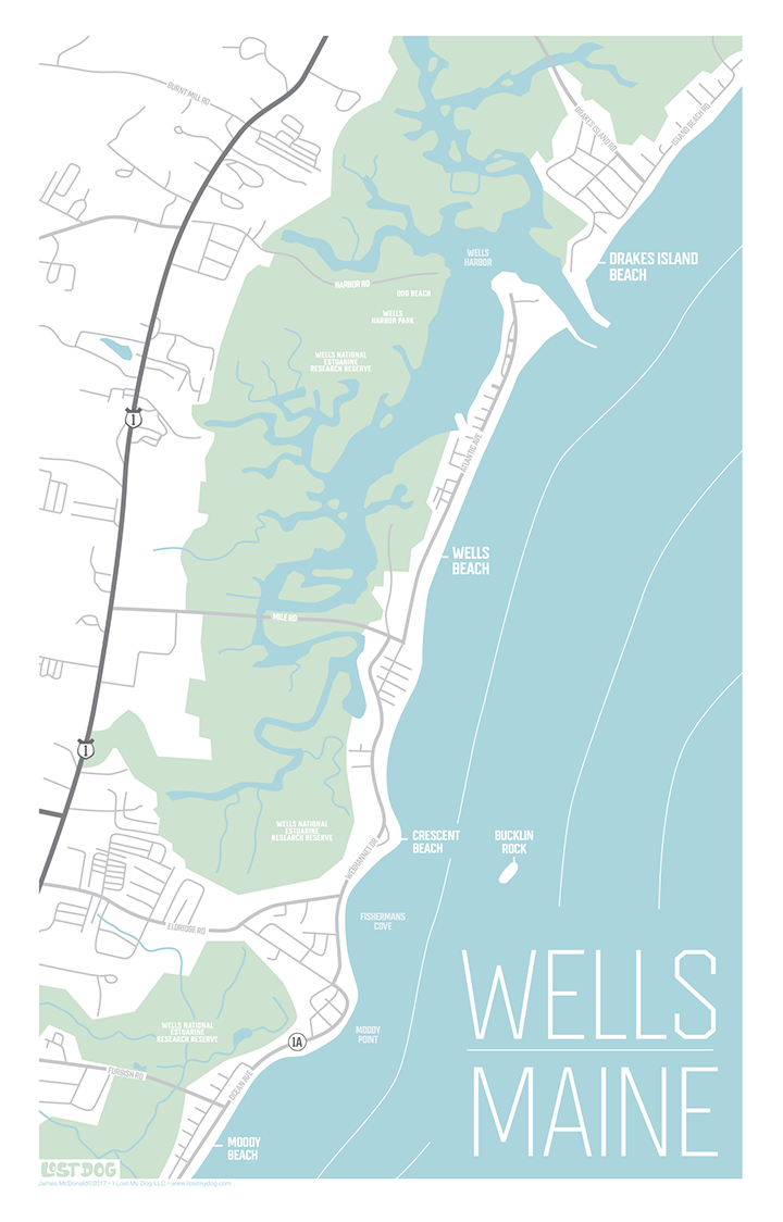 Wells Beach, Maine Line Map – LOST DOG Art & Frame