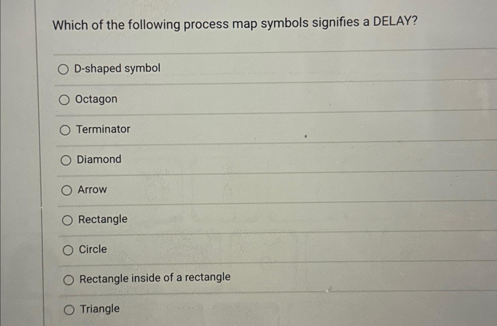 Solved Which of the following process map symbols signifies